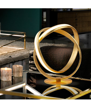Lampada da tavolo in acciaio e alluminio, rifinita in LAMINA D’ORO.