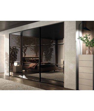 Armadio scorrevole, due ante da 135 Vesuvio, L276 H2 152 P 67 canapa top Matt, specchi bisellato fumé / telaio nero top Matt. Sistema scorrevole soft closing