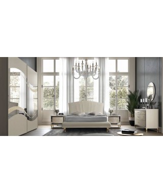 Armadio maxi Ischia canapa frassinato + specchio fumè con motivo serigrafato Glitter oro - sistema SOFT Closing inserito