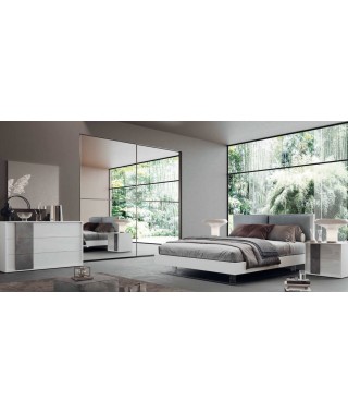 bianco frassinato/ frontali laccati bianchi lucidi + maniglie cemento grigio
