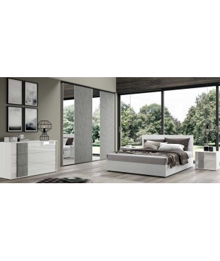 Armadio maxi Land cassa bianco lucido, ante cemento grigio con maniglioni bianco lucido e specchi riflettenti - sistema SOFT Closing inserito