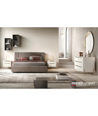 Camera Ambra con letto Vega. Aggiunge un tocco di modernità e realizza un risultato di grande effetto. Lo stile minimalista, le scelte cromatiche e le forme leggere del gruppo Ambra innovano e personalizzano il mondo dell’arredo indoor con grande naturalezza.