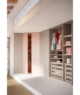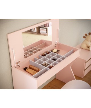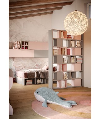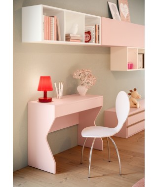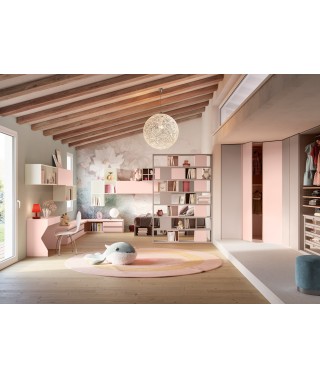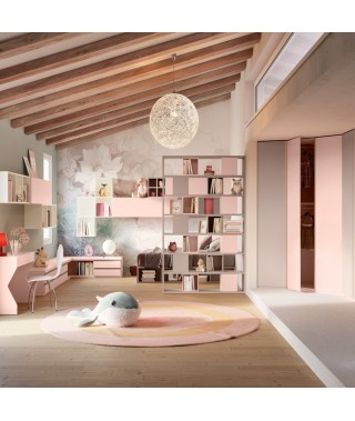 Un piccolo mondo fatato dove far crescere la vostra bambina tra sogni e fantasia, con scrivania vanity, armadio battente con cabina ad angolo e libreria bifacciale.
