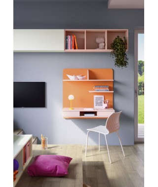 Uno spazio pensato per le moderne teenager, dove la scrivania sospesa risulta essere la soluzione pratica e dal design accattivante.