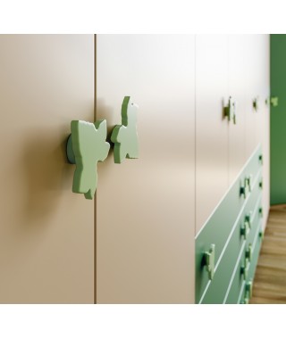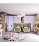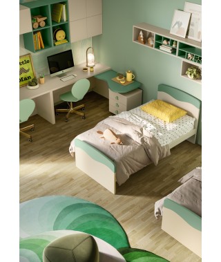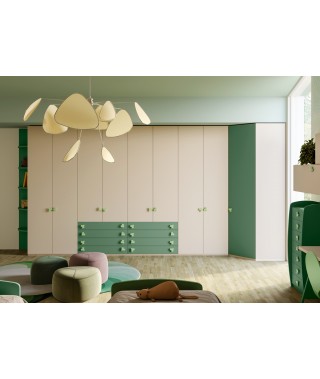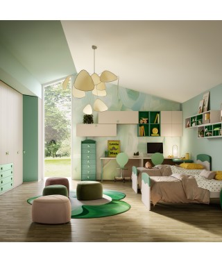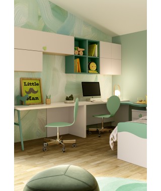 Un richiamo ai colori della natura in una cameretta con armadio battente con cabina armadio ed ampia scrivania.