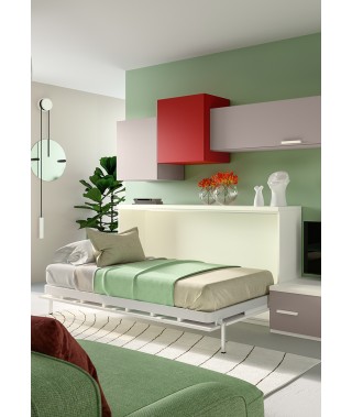Cameretta con armadio battente con letti trasformabili, una soluzione salvaspazio per arredare spazi dalle dimensioni contenute.