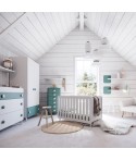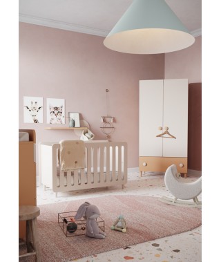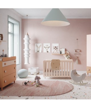 Arredare la cameretta per i più piccoli con prodotti sicuri e pratici nella vita di tutti i giorni: lettino, armadio battente con cassettone e fasciatoio.