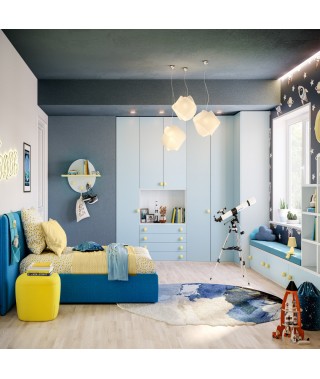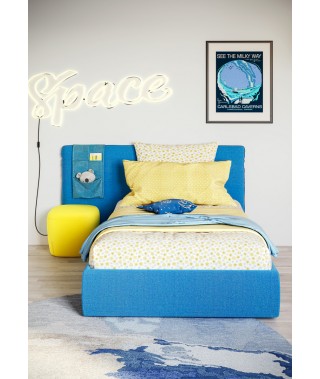 Pronti ad un viaggio nello spazio? Una cameretta da vivere con la fantasia e nel massimo relax con il letto imbottito.