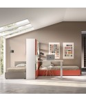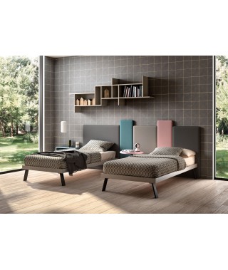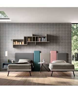 La testiera “Puzzle” ancorata a parete è la protagonista della camera, con i suoi soffici pannelli imbottiti che giocano su diverse dimensioni e si possono personalizzare con i tessuti da campionario ZG.