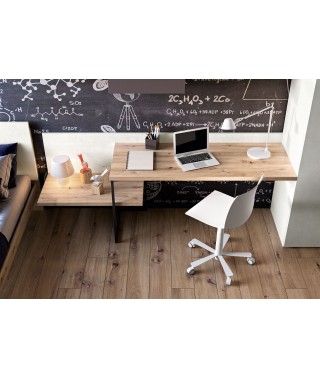 Il nuovo scrittoio “Zag” con piani sp. 3,5 cm. in Rovere Nodato con schienale Kavir è disponibile nelle finiture Basik.