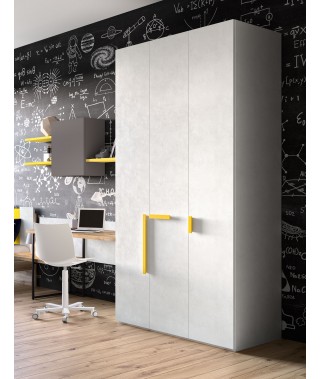 Zoom sull’armadio nella finitura Kavir, che riproduce l’effetto del cemento.