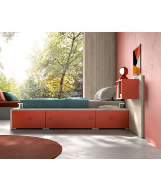 Il letto dallo stile ultra essenziale e nordico con comodi cassettoni colorati e guide per il materasso in metallo Bianco.