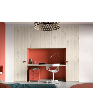 Il contrasto tra il legno delicato e il colore puro dei pannelli, dei pomoli e della cassettiera è decisamente audace e giovane.