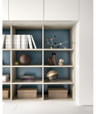 La libreria a muro “Lab” è attrezzabile di ripiani colorati e struttura in metallo verniciata Bianca o Antracite.