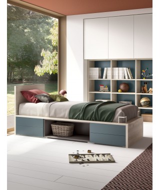 Divertente e bella soluzione salva-spazio nel nuovo letto Groove, che sfrutta lo spazio sotto il letto con pratici cassetti e vano a vista.