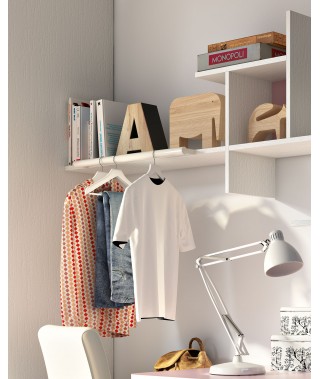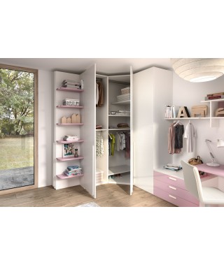 L’angolo cabina con anta da 60 cm. , una volta aperto, rivela un guardaroba ordinato e super capiente.