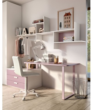 Lo scrittoio ha le gambe in metallo verniciato Rosa in abbinamento al piano.