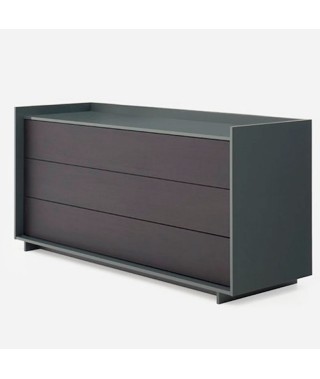 La cornice esterna, più marcata e profonda, racchiude al suo interno cassetti con apertura push pull, definendo con garbo austero l’intero volume della struttura.