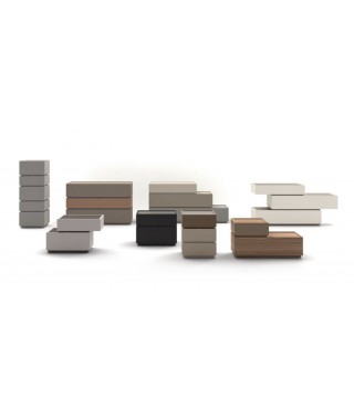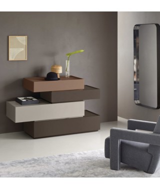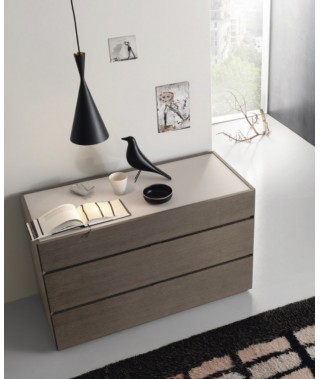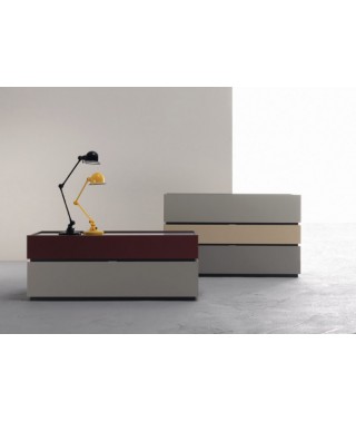 I contenitori Cidori sono caratterizzati da frontali e schienali rialzati che incorniciano, come in un vassoio personalizzabile con il top in vetro laccato lucido o satinato.