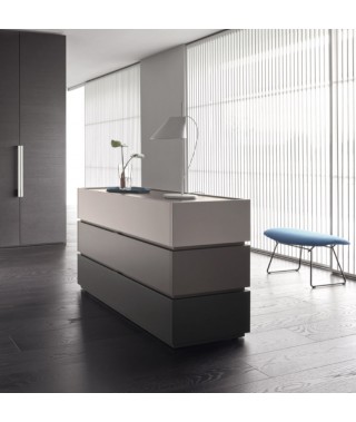 Filo è un linguaggio contemporaneo ed essenziale, nei quali il top e i fianchi a filo dei cassetti si vestono con finiture materiche e laccate. I frontali sono ininterrotti dal semplice e. Delicato segno orizzontale delle maniglie, con finitura in tinta oppure a contrasti.