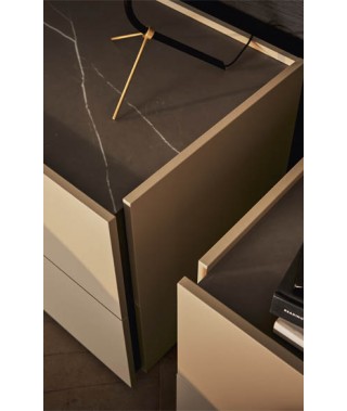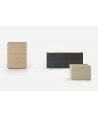Linee semplici e pulite, nel nome della versatilità e della funzionalità. I cassetti di questa collezione di mobili contenitori hanno frontali in tinta con la struttura e si aprono lateralmente grazie alla gola rientrante che consente una pratica presa. I profili verticali laterali ed il piano possono essere scelti con finitura in contrasto a quella della struttura o in continuità materica e cromatica, dando la possibilità di creare molteplici combinazioni, incontrando sia i gusti classici sia quelli più eclettici, anche grazie all’utilizzo di finiture come marmo, terrazzo e vetro.