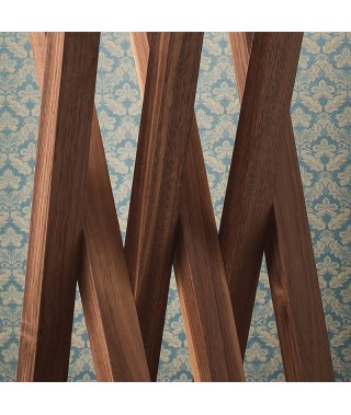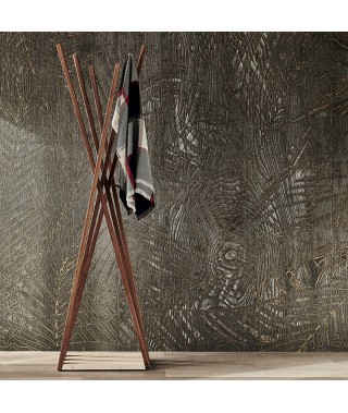 Appendiabiti in legno noce Canaletto (NC) o rovere bruciato (RB) con base in Travertino naturale (TN).