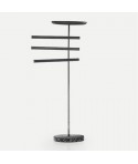 Questi ultimi sono accomunati e connotati da uno specifico particolare: la base in terrazzo, a sorreggere un fusto metallico sottile e slanciato, da cui si dipartono una serie di elementi ad altezza ideale alla loro fruizione.