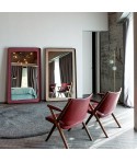 Angoli morbidi, curve accentuate, che amplificano l’audacia del design, perseguono l’armonia delle parti e dell’insieme. La struttura di base è uno specchio supportato da un retro-pannello in legno nero.