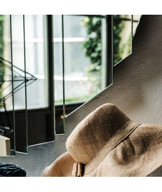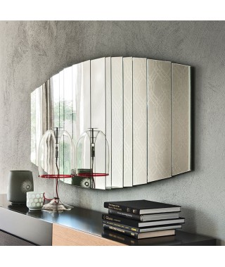 Specchio da parete composto da listelli di cristallo specchiato accostati.