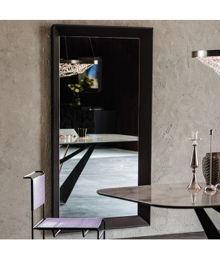 Specchio da parete o da terra in cristallo specchiato o specchiato fumé con cornice rivestita in ecopelle o pelle nei colori come da campionario.