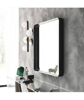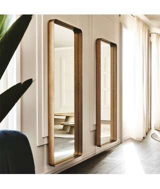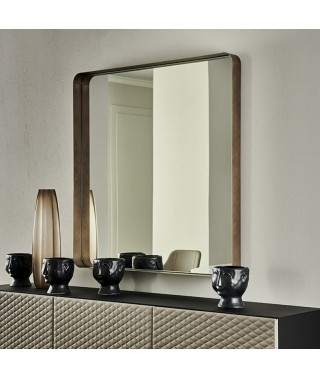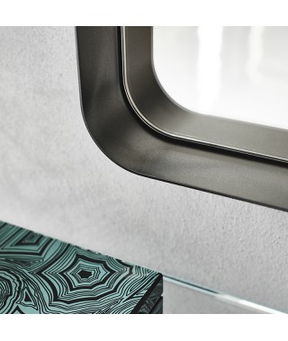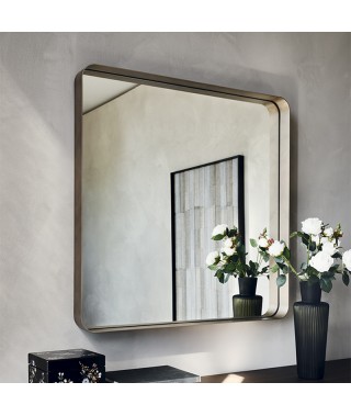 Specchio da parete in cristallo specchiato. Cornice in acciaio verniciato goffrato titanio (GFM11) o nero (GFM73), Brushed Bronze o Brushed Grey.