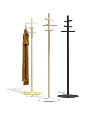 Appendiabiti con base zavorrata, colonna in metallo e ganci in legno di faggio.
