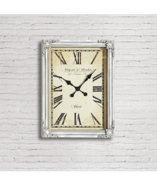 Orologio realizzato in legno decorato di colore bianco anticato.