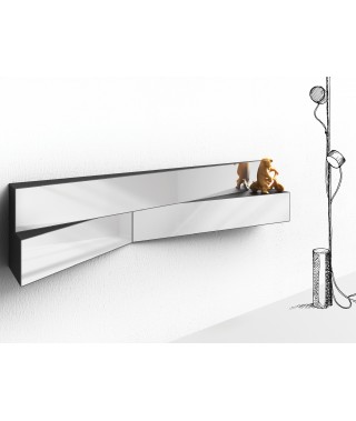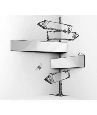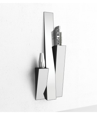 Mensole in metallo di forma triangolare con specchio sulla superfice frontale, colore antracite. Disponibili in tre diverse misure con possibilità di fissaggio orizzontale o verticale al momento del montaggio.