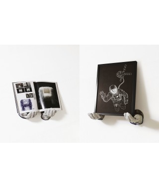 Coppia di mani in fusione di alluminio con guanti da lavoro in dotazione.