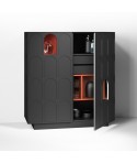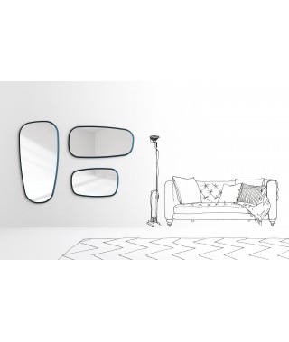 Specchio con struttura portante in legno in tutti i colori come da campionario.Lo specchio sul bordo è finito con la bisellatura
