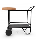 Tavolino realizzato in tubo di metallo e piano in legno o ceramica.
