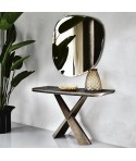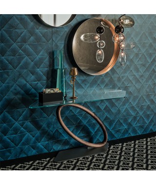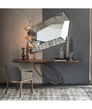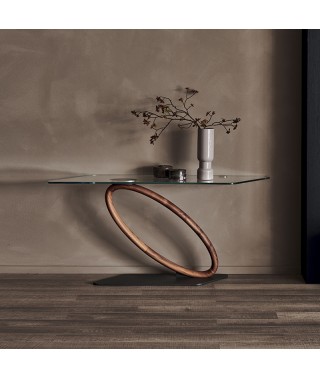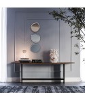 Consolle con base in acciaio verniciato goffrato graphite (GFM69), gamba in noce Canaletto (NC).