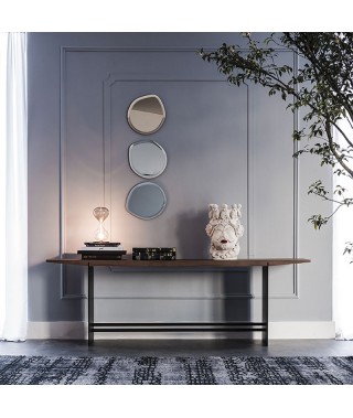 Consolle con base in acciaio verniciato goffrato titanio (GFM11) o nero (GFM73).