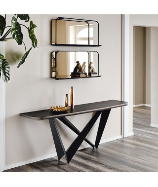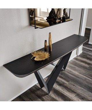 Consolle con base in acciaio verniciato goffrato titanio (GFM11), bronzo (GFM18), graphite (GFM69), bianco (GFM71), nero (GFM73), mix (GFM69-GFM71), Brushed Bronze o Brushed Grey.