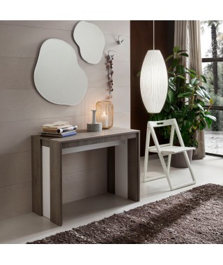 Consolle Tony, realizzato interamente in melamminico di alta qualità con poro a registro in finitura “Pembroke” rovere grigio.