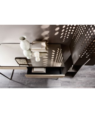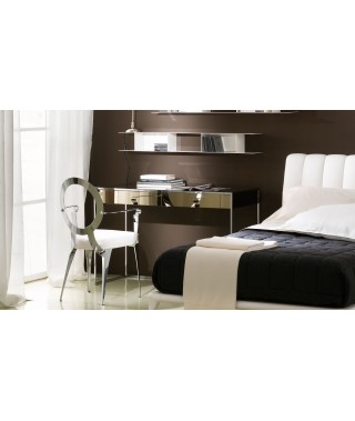 Il top è rivestito in specchio, mentre i frontali del cassetto e i fianchi possono essere imbottiti e rivestiti in econabuk.