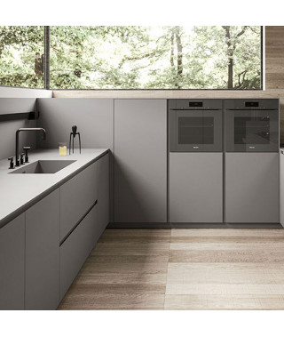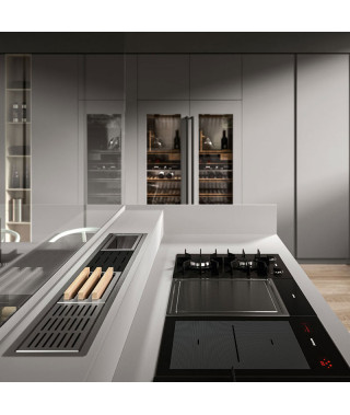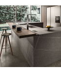 !8 decorativi in gres porcellanato; Fenix Ntm® e Nta®, un materiale di ultima generazione con trattamento nanotecnologico che rende la superficie estremamente compatta e idrorepellente con effetto soft-touch ed anti-impronta; il Corian® e i nuovi legni nelle finiture Olmo sabbiato che si aggiungono al Rovere Antico e Fiammato.