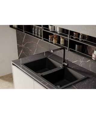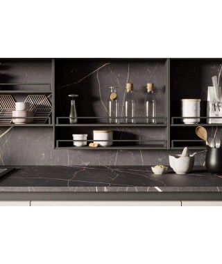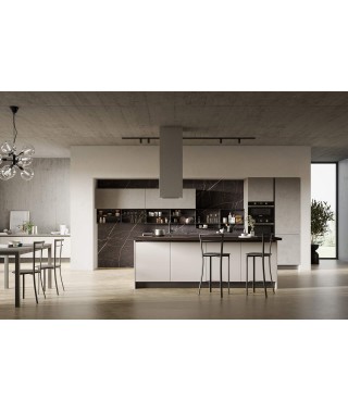 Scegli una soluzione a isola come questa Domino, realizzata con materiali pratici e resistenti, proposti in finiture dalla notevole resa estetica, amplificata