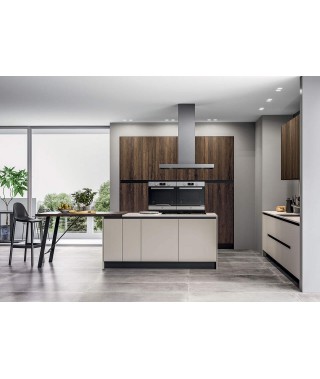 Alla ricerca di una cucina a isola minimal Zoe? Puoi immaginarla con isola operativa con cottura e piano snack in appoggio e una cappa aspirante protagonista dello spazio. Ricorda che quando l’isola ha il piano cottura o l’area lavaggio richiede la presenza degli attacchi per le relative utenze. Se non fossero disponibili, meglio optare per una semplice isola a piano unico di lavoro.