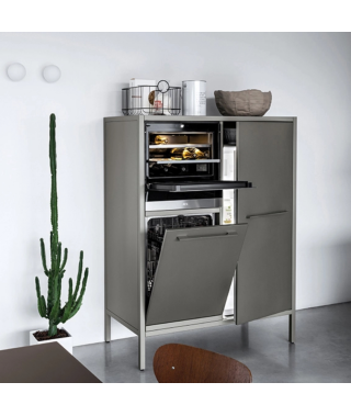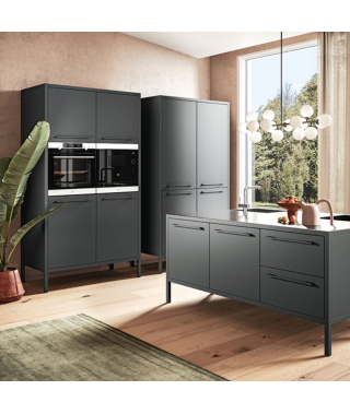 Le colonne Frame sono proposte in due altezze e possono essere dotate di ante ed elettrodomestici, senza limiti compositivi. La sorprendente palette cromatica, composta da 47 finiture, consente di personalizzare il prodotto adattandolo a ogni ambiente.