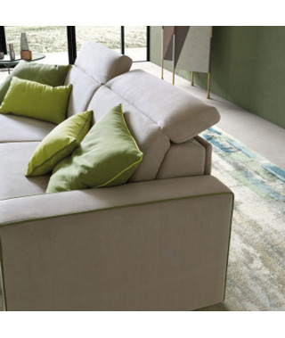 In tessuto o texil completamente sfoderabile (per composizione e lavaggi fare riferimento all’etichetta). Nelle versioni in similpelle sfoderabile cuscini seduta.