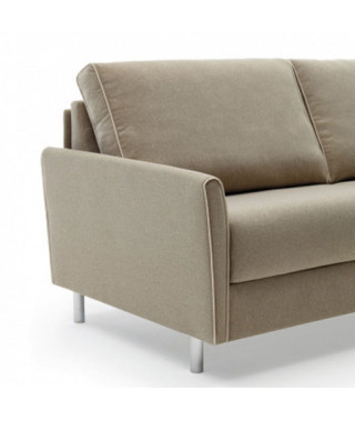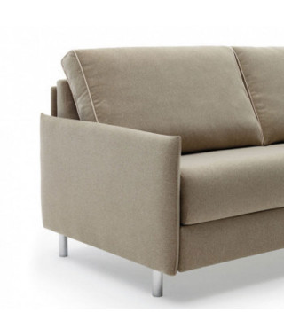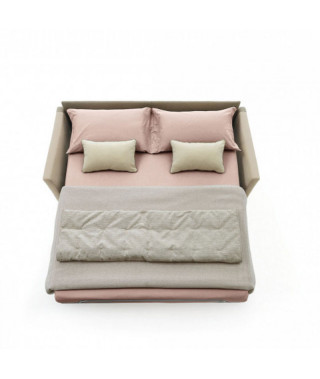 Maldive: set incantevole per il divertimento diurno e atollo di pace e romantica quiete di notte. Sollevato da terra grazie a eleganti e slanciati piedini e rivestito da tessuto sfoderabile e lavabile, questo divano dall’ampia seduta e dallo schienale avvolgente, riserva indimenticabili momenti di vita quotidiana, al riparo dalle preoccupazioni legate alla pulizia e al mantenimento dei rivestimenti. Al tramonto, questa originale isola di svago si trasformerà facilmente in un morbido e intimo letto matrimoniale, giaciglio ideale per cullare il relax notturno