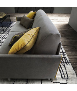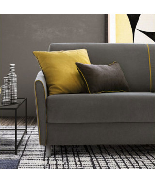 In tessuto o texil completamente sfoderabile (per composizione e lavaggi fare riferimento all’etichetta). Nelle versioni in similpelle sfoderabile cuscini seduta.