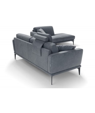 Con il dettaglio sartoriale della doppia cucitura a rilievo lungo il bracciolo leggermente inclinato che ne esalta i profili, è caratterizzato da linee semplici e snelle esaltate dal sottile piede metallico. Agi è versatile e adattabile ad ogni contesto, grazie a moduli combinabili di divano con lounge e con la possibilità di avere anche un poggiatesta posizionabile sulla spalliera che ne esalta il comfort.